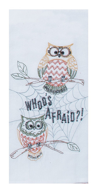 Description Intricate details and colors make this Whoo's Afraid Owl Embroidered Flour Sack Kitchen Dish Towel a perfect addition for Halloween celebrations.
